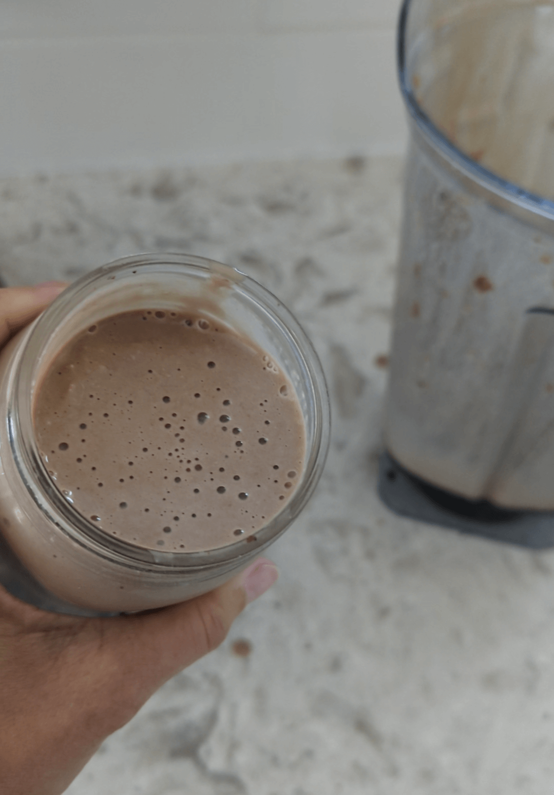 - 1 scoop protein powder (vanilla or chocolate tastes best)